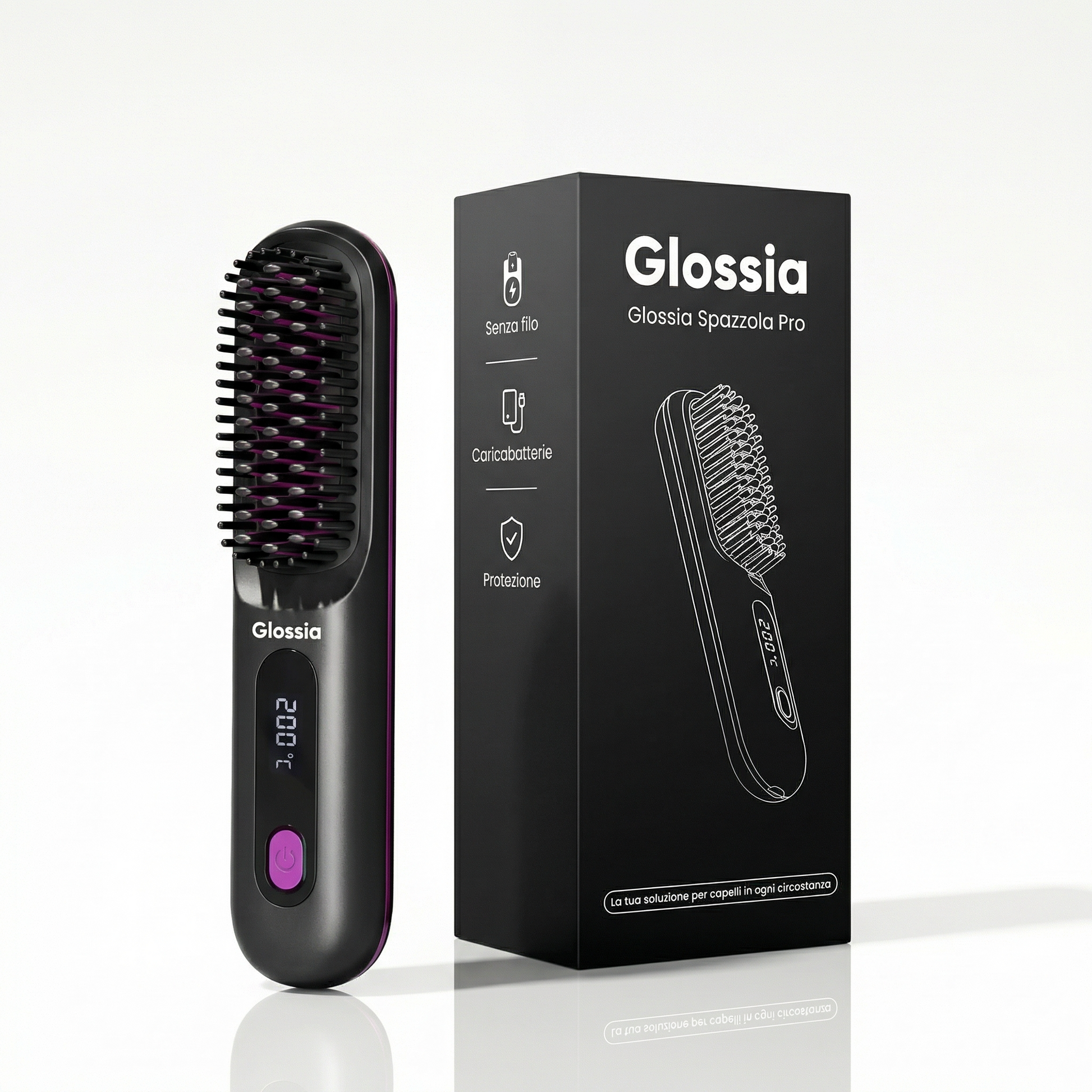 Viaggio spesso per lavoro e i miei capelli erano sempre un disastro in hotel. Phon sconosciuti, niente spazio, zero tempo.Glossia è compatta, senza filo e si ricarica ovunque.La metto in borsa e in 2 minuti sono pronta per le mie riunioni. Non parto più senza di lei!